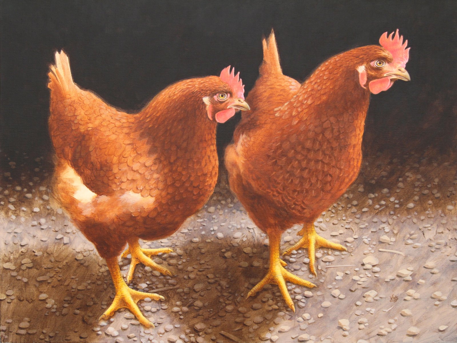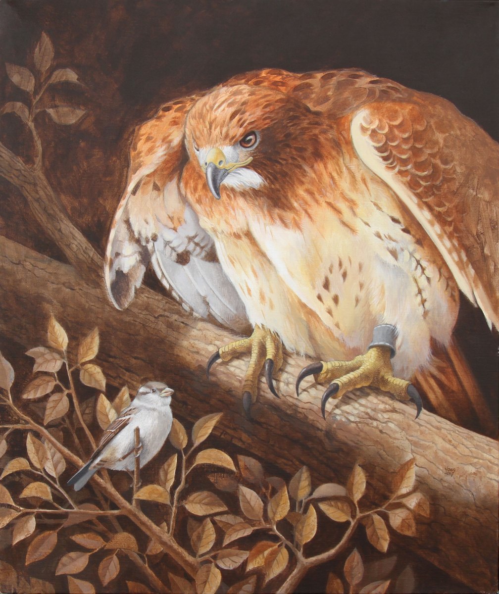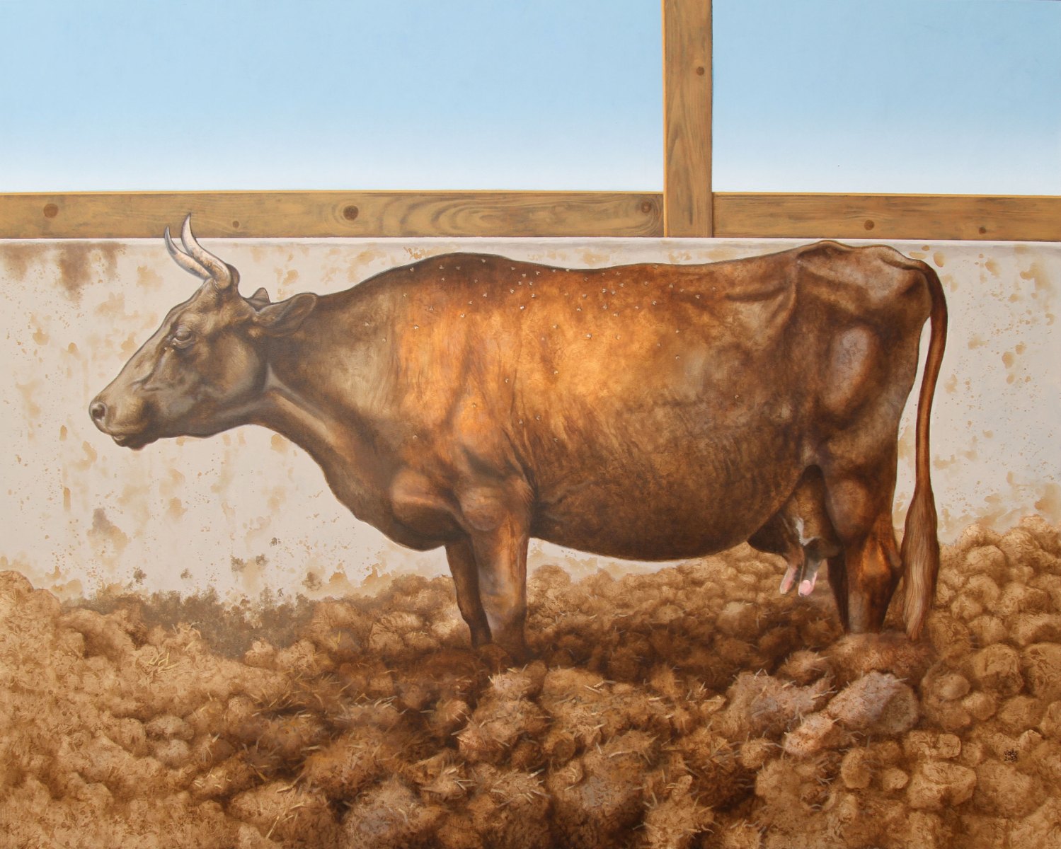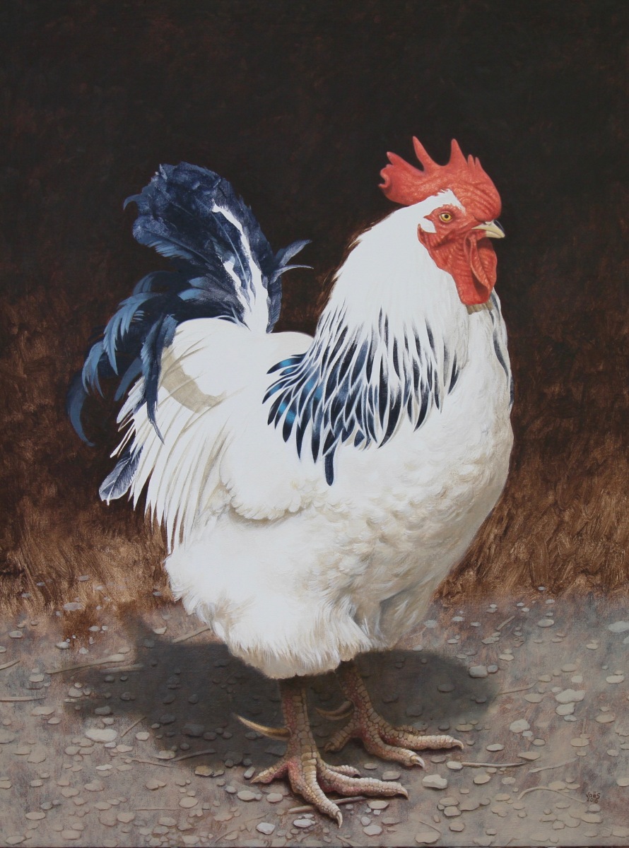In my large canvases of animals, I focus on painting with a deep sense of realism and detail, drawing inspiration from earlier masters like Rosa Bonheur and George Stubbs. I approach each subject with reverence and love, capturing not only their natural beauty but also, at times, the humor or horror of their predatory instincts. My work sometimes features these animals as prominent figures in the foreground, set against intricate repeat pattern backgrounds, adding depth, complexity, and irony to the scene. In some pieces, I incorporate literary, mythological, and biblical themes—using references like Zeus or David and Goliath—to further explore the timeless stories that animals can evoke. Through my art, I aim to honor the dignity and spirit of the animal world while engaging with the broader narratives that connect us all.