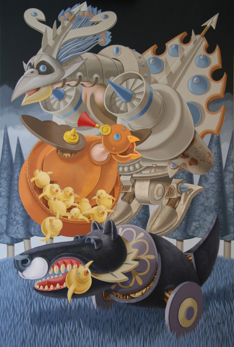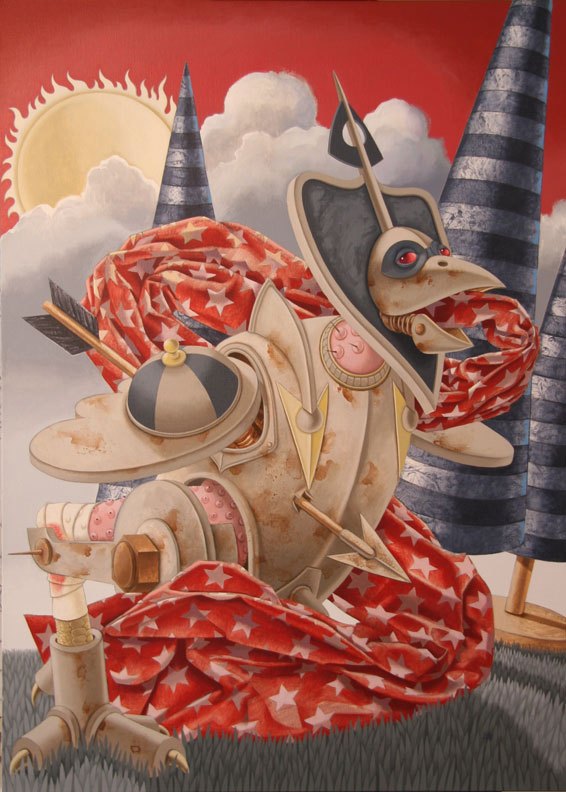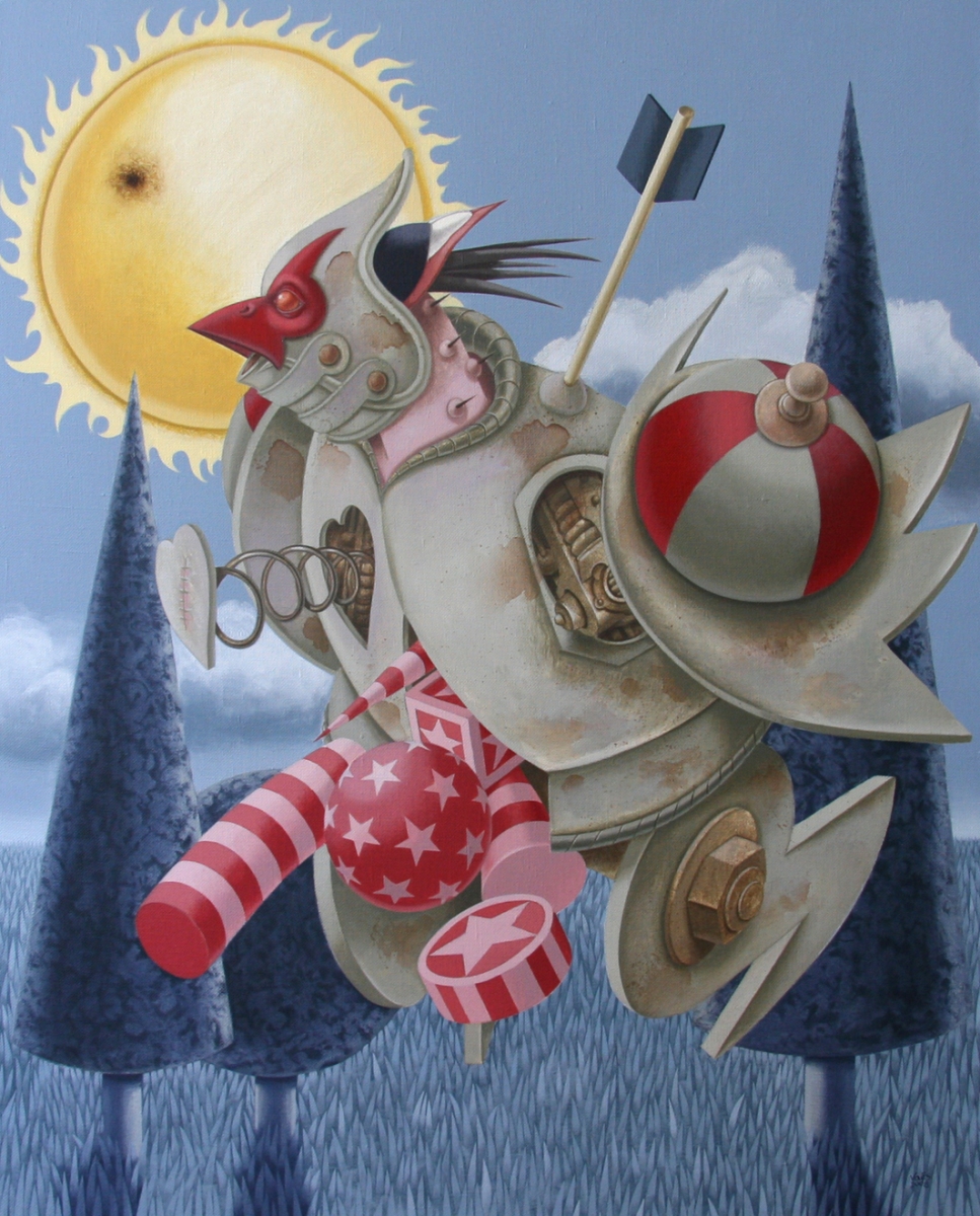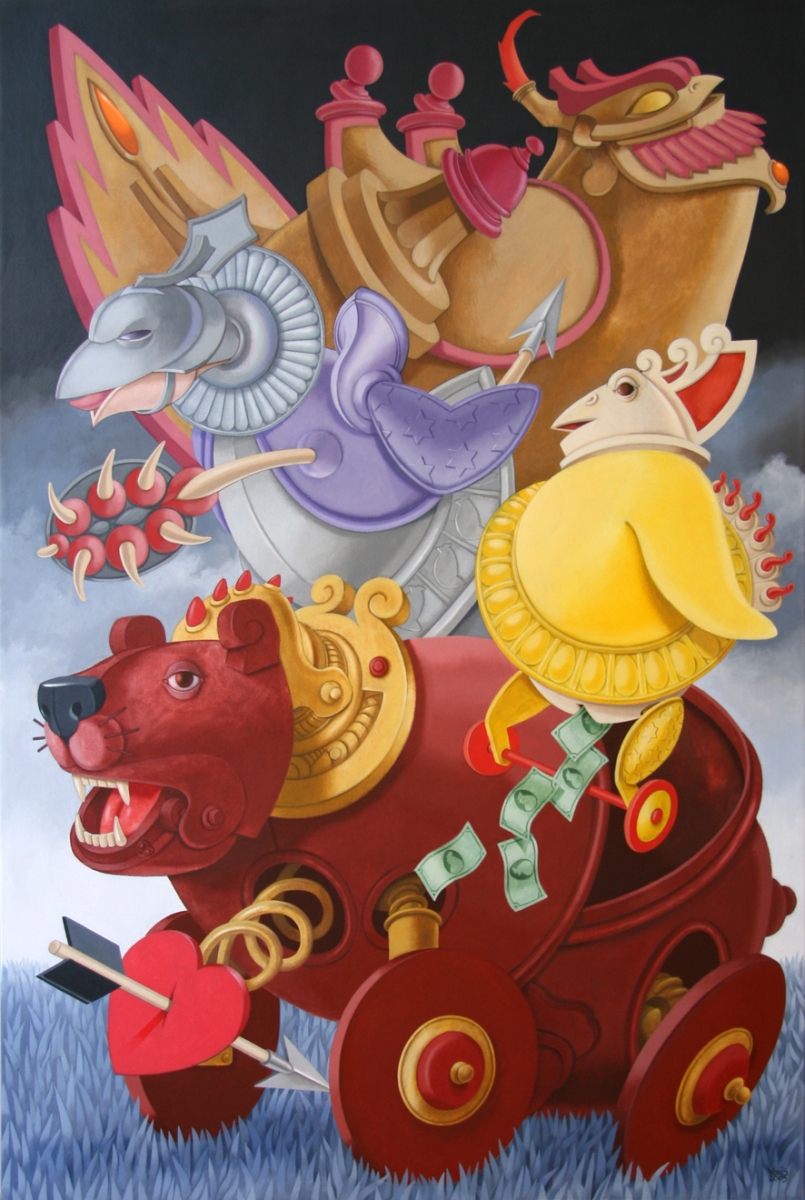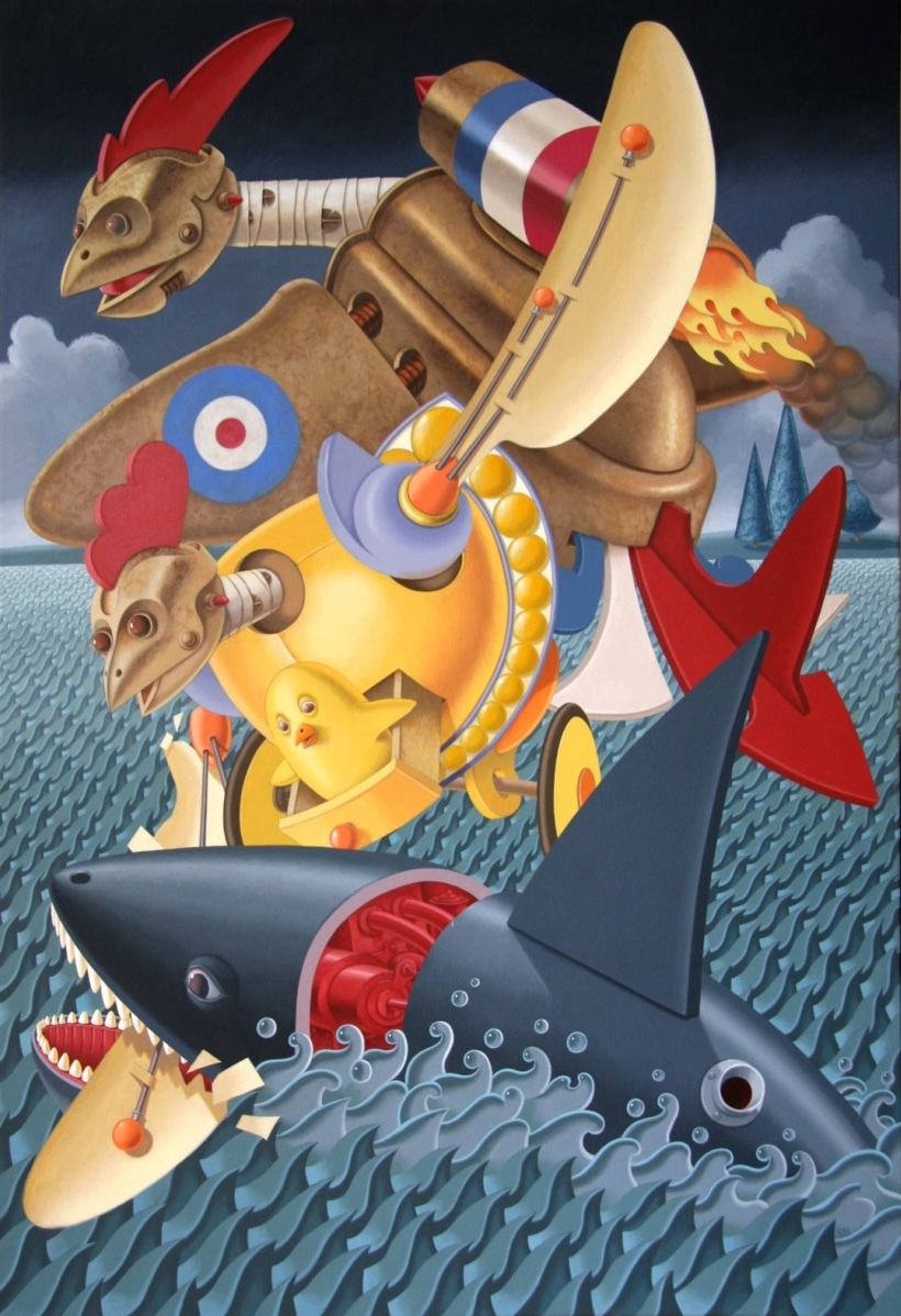 In my Imagination Chamber series, I explore the playful and the surreal through whimsical, meticulously rendered animals set in fantastical landscapes. Using super-saturated colors and a cartoon-like gloss, I aim to create an immersive world where humor and imagination merge, often punctuated by puns in the titles. My work bridges the boundary between the familiar and the absurd. Creatures—both real and imagined—inhabit these vibrant scenes, inviting viewers to step into a universe where fantasy reigns.