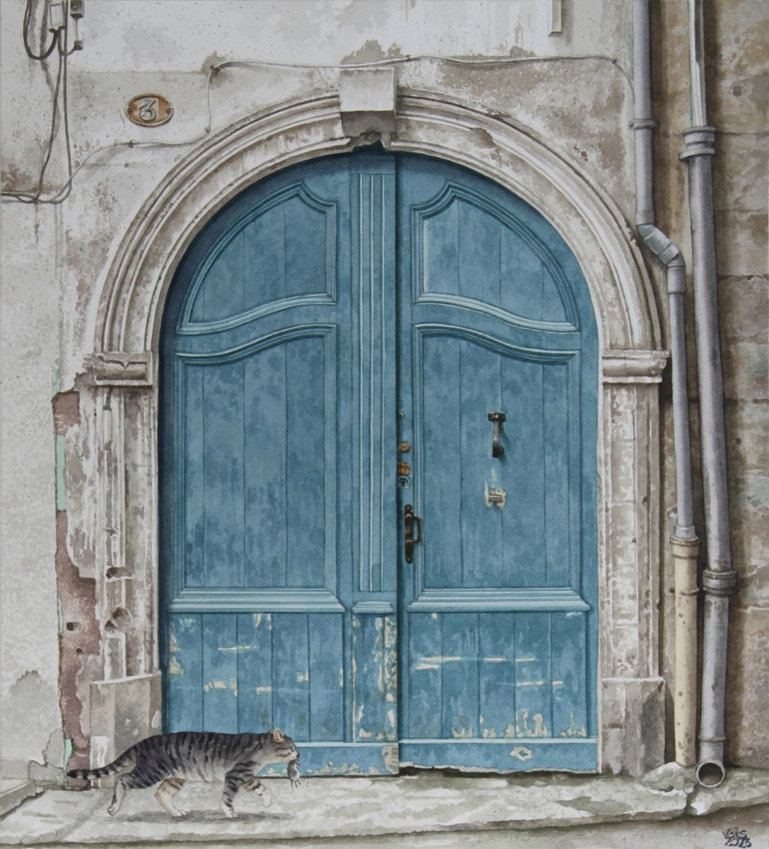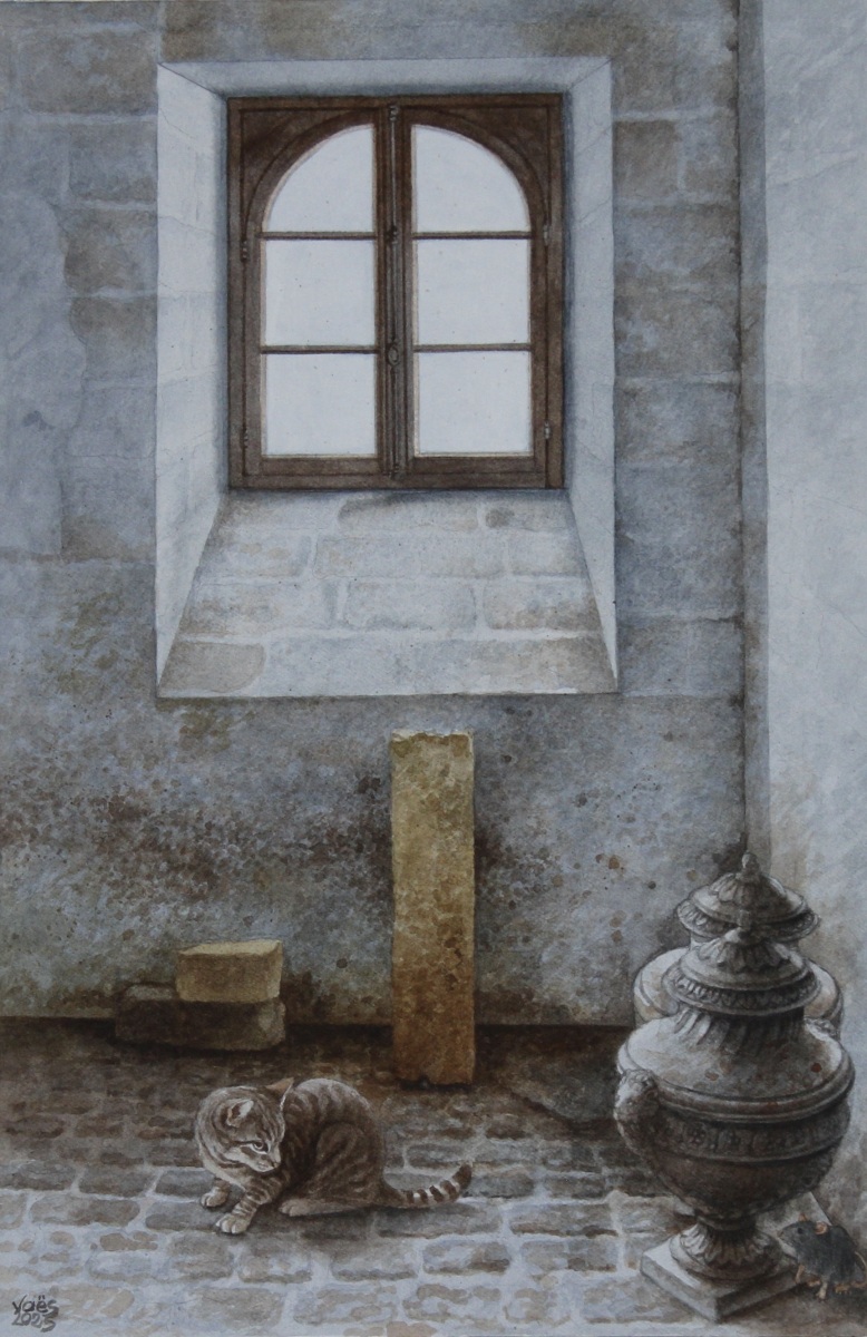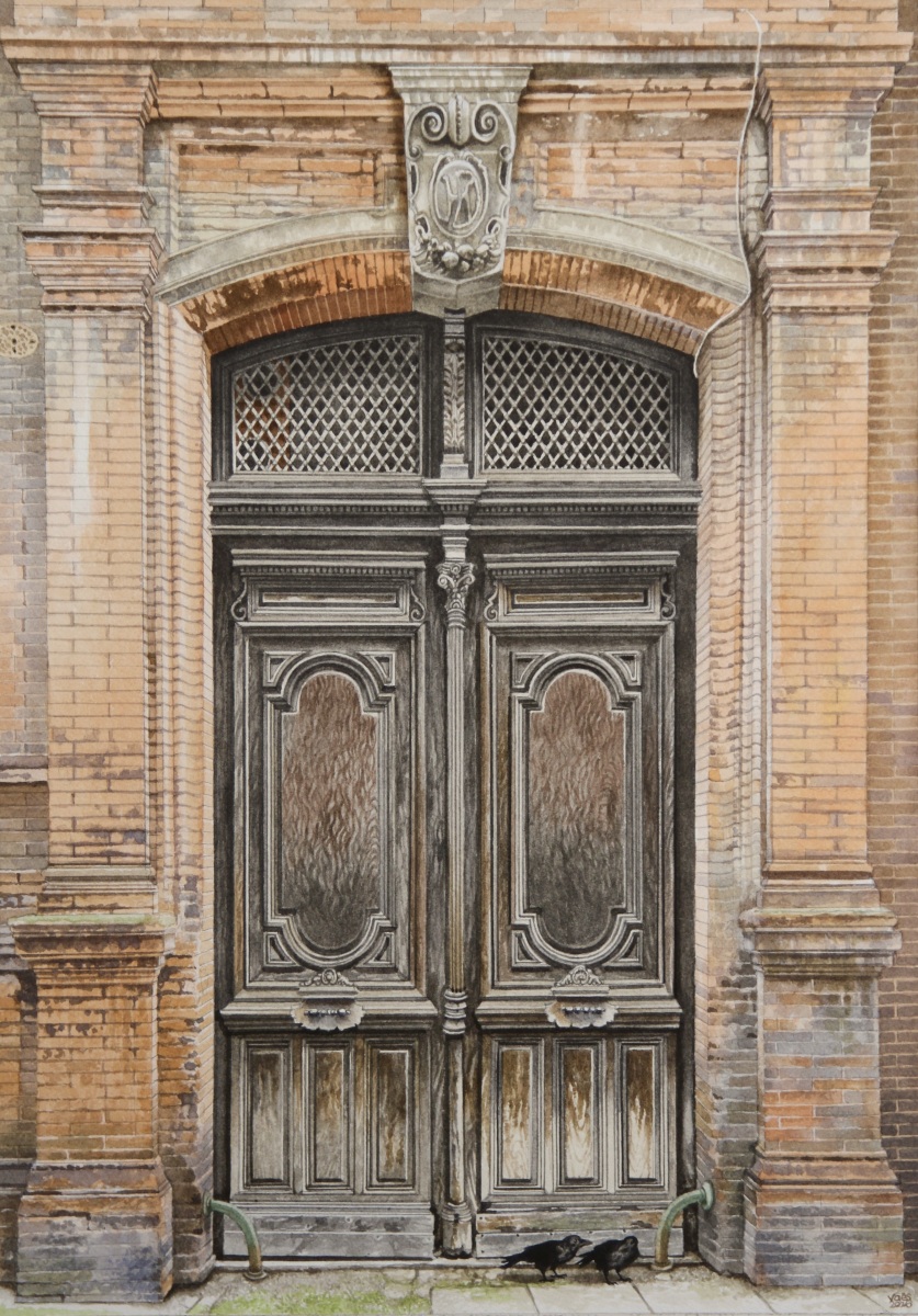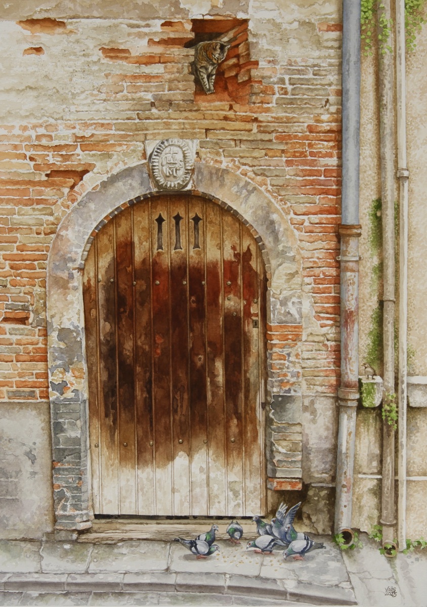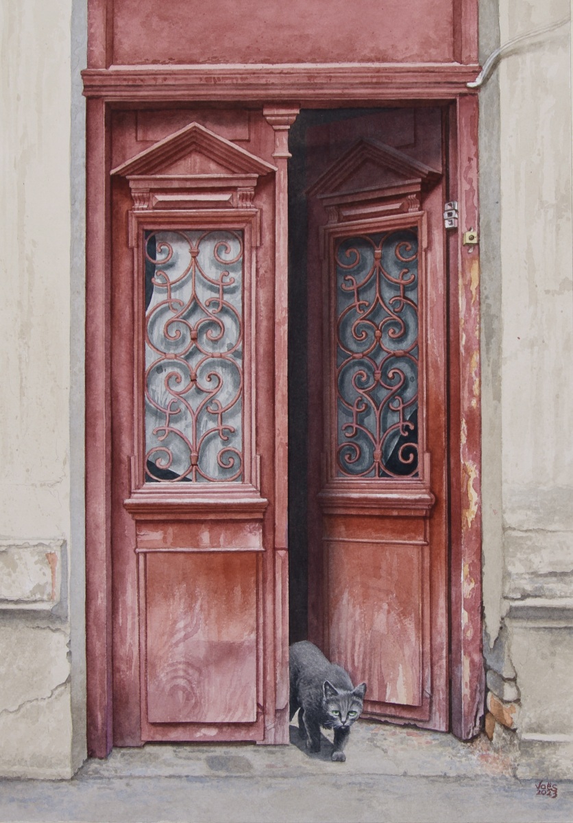As a watercolor artist, I draw inspiration from Europe’s rustic buildings, capturing the charm of historic doors or architectural details from photos I take during my travels. Animals—whether cats, dogs, horses, or birds—are a recurring theme in my work, bringing life to these quiet scenes. My technique is both precise and delicate, balancing intricate details with the fluidity of watercolor washes, allowing the texture of the paper to enhance the final piece. Through my art, I seek to honor the connection between architecture and the natural world, creating narratives that blend the built environment with the presence of animals.
