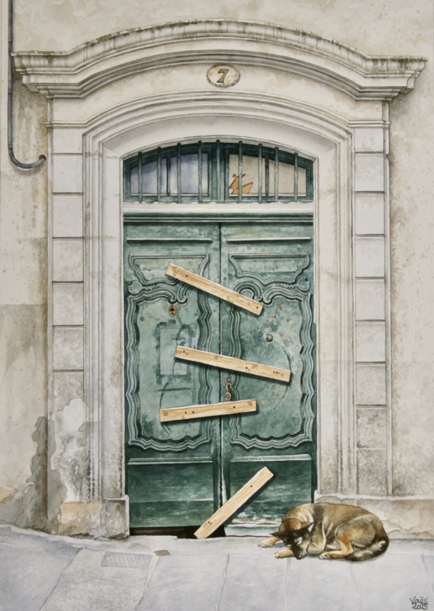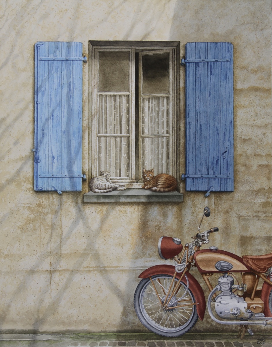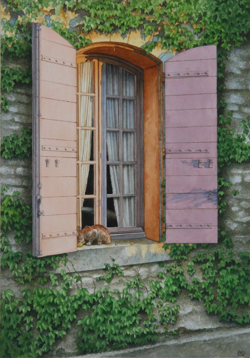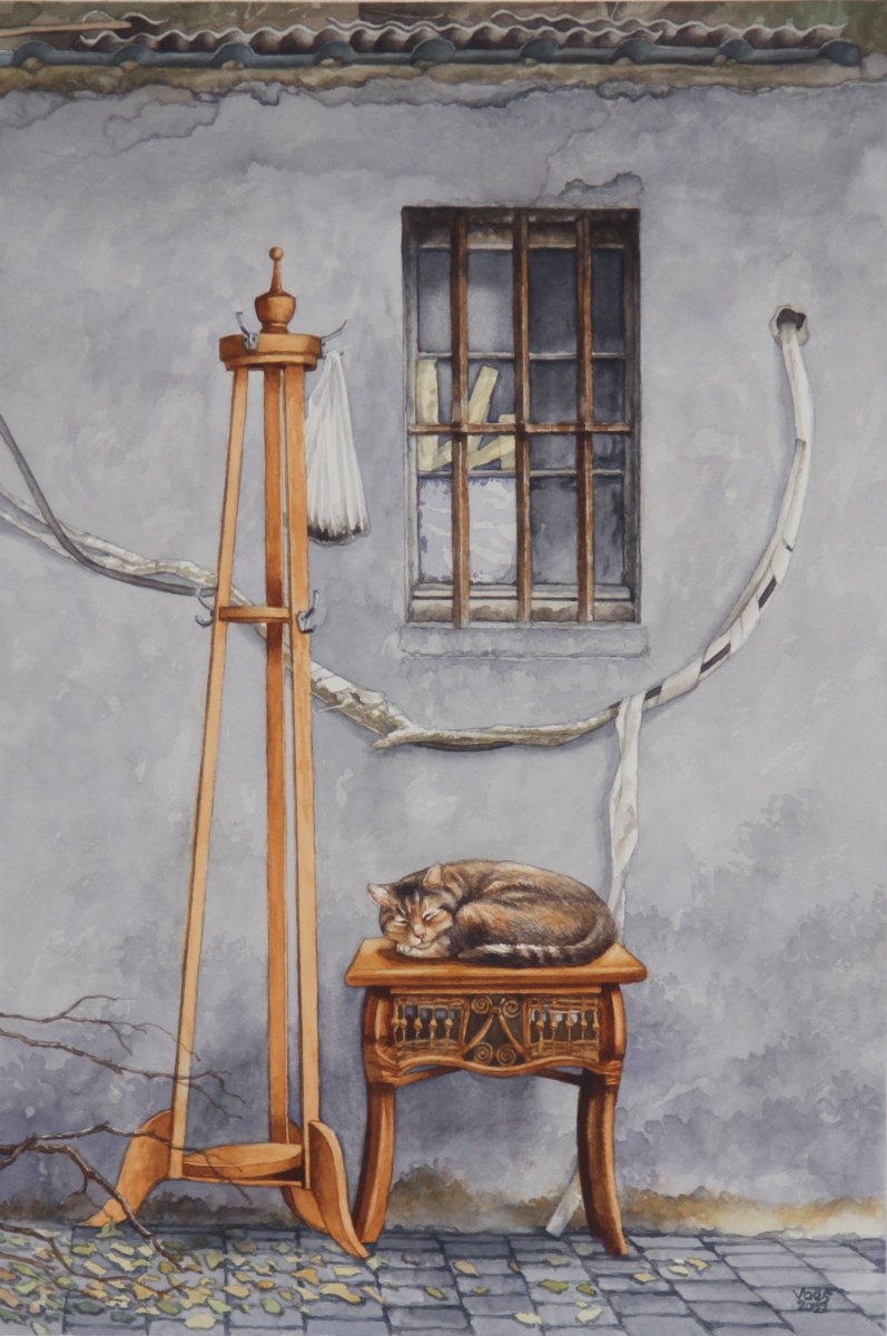As a watercolor artist, I draw inspiration from Europe’s rustic buildings, capturing the charm of historic doors or architectural details from photos I take during my travels. Animals—whether cats, dogs, horses, or birds—are a recurring theme in my work, bringing life to these quiet scenes. My technique is both precise and delicate, balancing intricate details with the fluidity of watercolor washes, allowing the texture of the paper to enhance the final piece. Through my art, I seek to honor the connection between architecture and the natural world, creating narratives that blend the built environment with the presence of animals.